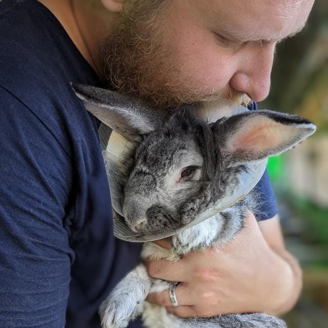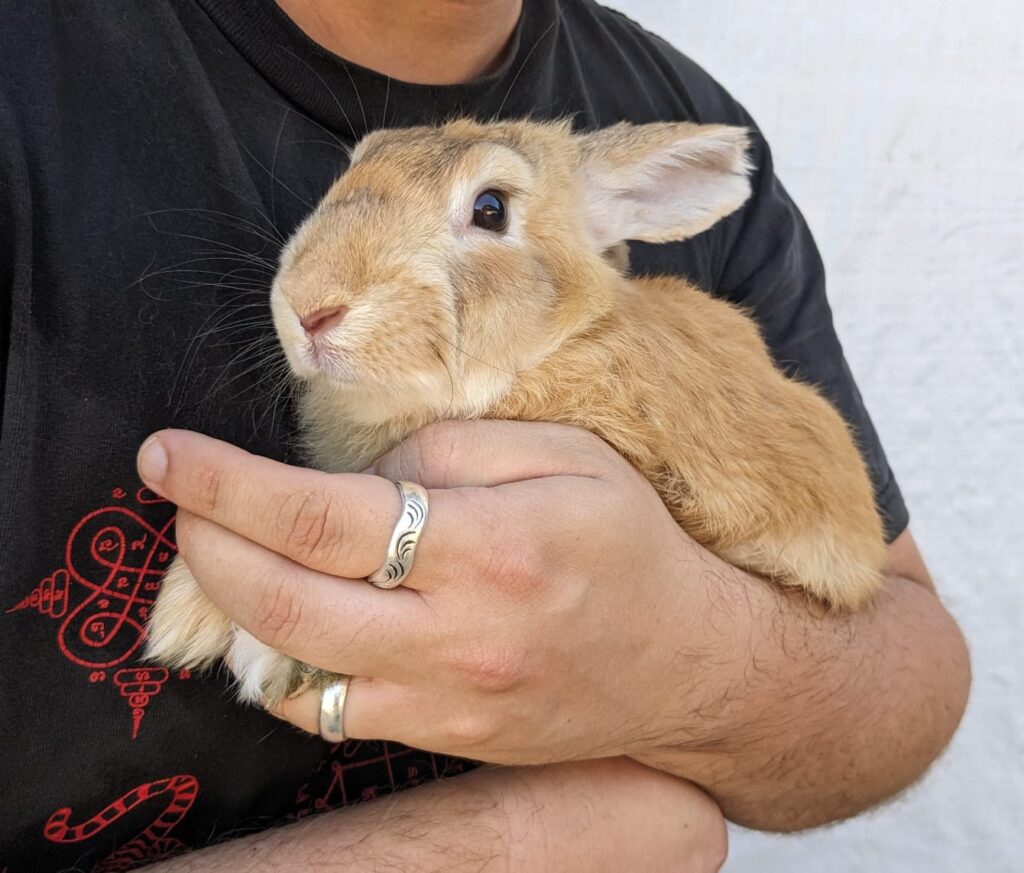ארנבון שמחולץ מהרחוב ומשוקם, מחכה להזדמנות נוספת בחייו לקבל בית חם.